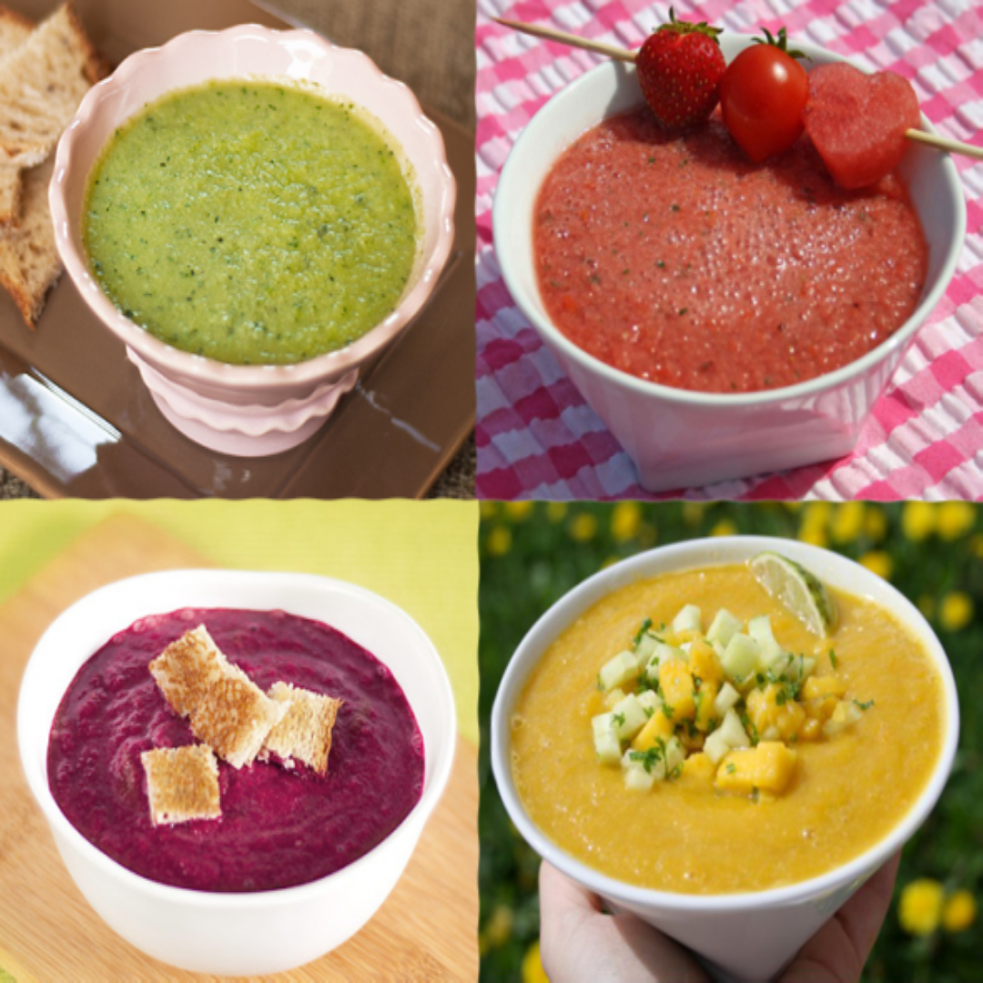 This summer there are gazpachos to discover. They can be sweet and fruity or spicy and garlicky. They can be prepared classically with tomatoes and cucumbers or crazier with fresh fruits and herbs. They can be red, pink, orange, green, or even purple!