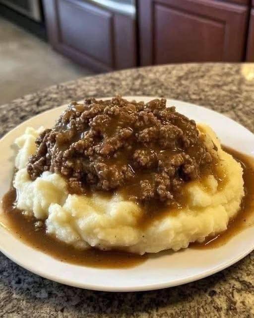 mashed potatoes with ground beef gravy