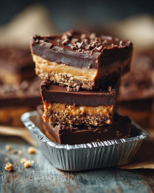 3-Ingredient No-Bake Chocolate Peanut Butter Bars (Tin Foil Tray)