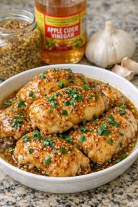 This slow cooker honey mustard chicken is the kind of weeknight dinner you can set up in minutes and let quietly transform while you do everything else. The entire flavor comes from one simple mixture—honey, Dijon mustard, whole grain mustard, apple cider vinegar, and garlic—poured straight over raw chicken breasts in the slow cooker. Honey mustard as a combination has roots in classic European mustard sauces, but here it gets the Midwestern, busy-home-cook treatment: pantry staples, minimal prep, and a deeply comforting result that tastes a little different every time depending on your honey, mustard brands, and how long you let it simmer.