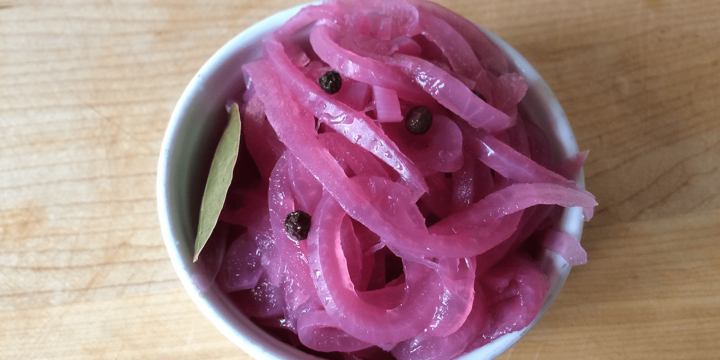 | Vinegar Pickle | Red onion, ACV, salt | Soak overnight | With proteins |