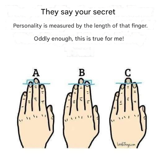 Do people constantly reveal their deepest secrets to you, even if you don’t know them well? It’s probably because your ring finger and index finger are exactly the same length.