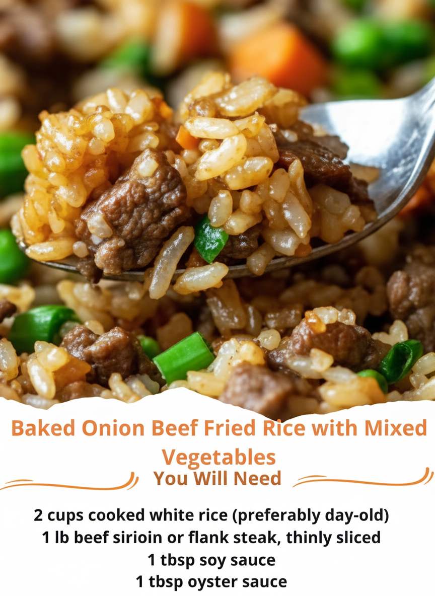 Baked Onion Beef Fried Rice is a delightful fusion dish that brings together the comforting flavors of Midwest home cooking with the vibrant tastes of Asian cuisine. This dish is perfect for those who love the savory depth of beef and the aromatic sweetness of onions, all combined in a satisfying fried rice. It’s a great way to use leftover rice and transform it into a hearty meal. The addition of mixed vegetables not only adds color but also boosts the nutritional value, making it a balanced dish for any occasion.
