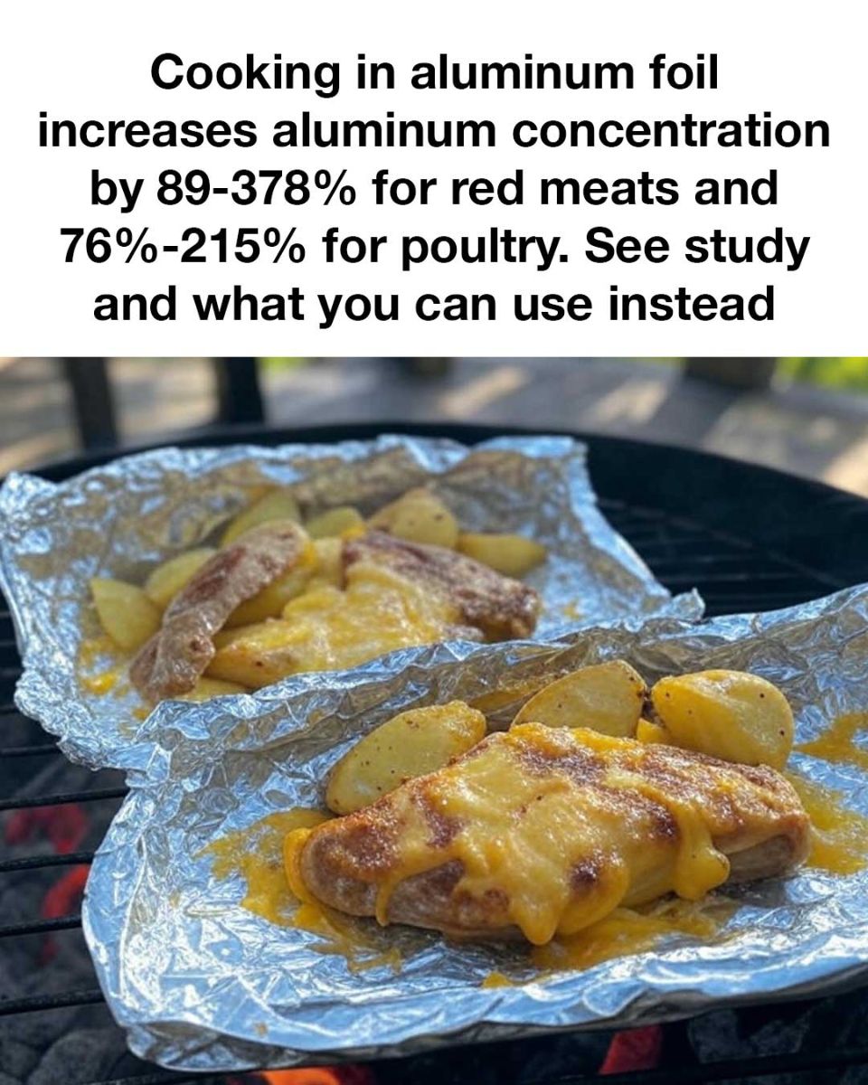 A study published in Meat Science (Turhan, S., 2006) examined the effect of cooking meats wrapped in aluminum foil at different temperatures and durations: 60 minutes at 150°C, 40 minutes at 200°C, and 20 minutes at 250°C. The results showed a significant increase in aluminum concentration in both red meats and poultry. Specifically: